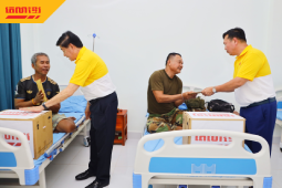 On the morning of August 8, 2025, Mr. Nguon Leng, Senior Deputy Director General, Honorable Representative, Oknha Chhun On, , CEO of Kampuchea Tela,, led a company delegation to visit and provide encouragement to the frontline soldiers who were injured in the battle and are receiving treatment at the 16 Makara Referral Hospital - Kulen Health Center, Preah Vihear Province and Military Region 4 Hospital, Siem Reap Province.